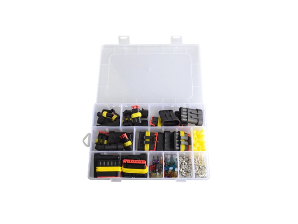 Hermetikus csatlakozókészlet + krimpelő fogó 216 darabos hermetikus csatlakozókészlet 6 méretben. Plusz nagyon erős krimpelő fogó szigetelés nélküli csatlakozókhoz SN-48B Krimpelő fogó SN-48B-nek automatikus racsni zárja és állítható pofafeszítése van. Automatikus lezárásuk van, amely lehetővé teszi a pofa kinyitását a csatlakozó helyes bekönyírása után. Krimpelés közben a zár egy speciális karral kioldható a racsni környékén. Ez egy professzionális krimpelő készlet Auto LockUp rendszerrel, magas minőségű acélból. A pontos mechanizmus lehetővé teszi az egyszerű és kényelmes munkát a csatlakozók krimpelése során. A pofák rendelkeznek aljzatokkal 3 méretű krimpelt vezetékhez szigetelés nélküli csatlakozókban: 0,14 ~ 0,5 mm2 1 mm2 1,5 mm2 Megfelel az AWG 24 - 14 tartománynak A krimpelő fogó lehetővé teszi a szigetelés nélküli csatlakozók krimpelését: M2.8mm, F2.8mm M4.8mm, F4.8mm M6.3mm, F6.3mm ISO csatlakozók Gyűrűs Villa alakú 216 darabos hermetikus csatlakozókészlet 6 méretben. Leggyakrabban az autóiparban használt, például érzékelőkhöz és járművekben található eszközökhöz. Nagyon jó szigetelést és tömítést biztosítanak. A készlet része komplett csatlakozók pinekkel, kábelhez való szilikon tömítésekkel: 2 darab 1-pólusú 2 darab 2-pólusú 2 darab 3-pólusú 2 darab 4-pólusú 2 darab 5-pólusú 2 darab 6-pólusú Ezenkívül a készletben autós biztosítékok különböző áramerősséggel: 12 standard biztosíték 12 MINI biztosíték A csomagolás lehetővé teszi a vizuális ellenőrzést, megakadályozza a különböző részek keveredését. Zárható tárolás BOX típusú: műanyag 195x130x36mm méretekkel „superserseal” típusú csatlakozók gumitömítéssel, amelyek ellenállást biztosítanak fékfolyadékokkal, olajokkal és üzemanyagokkal szemben.Kiegészítő paraméterek