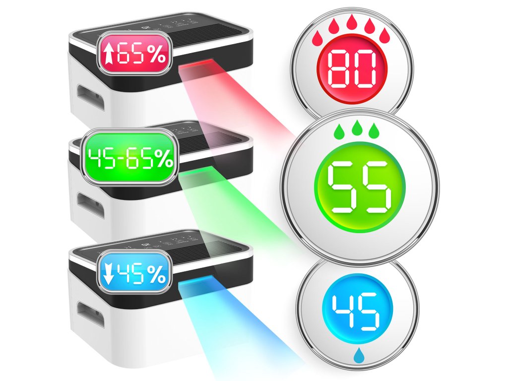 Háromszínű LED páratartalom jelzőAz irányítás már az első pillantásra: