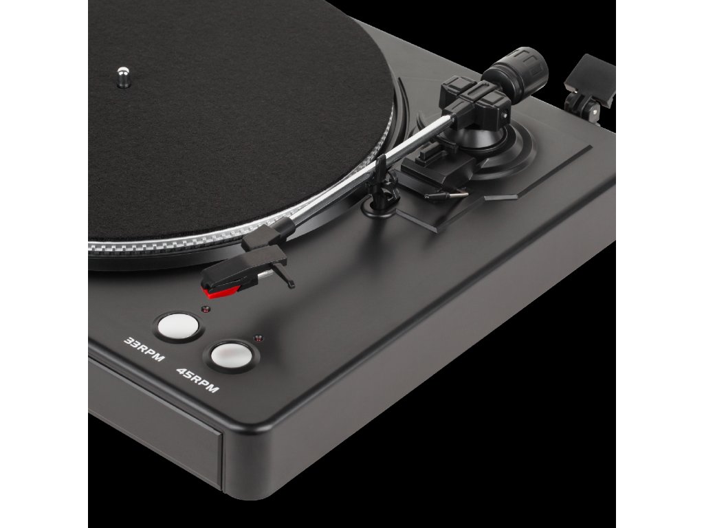 A modern Kruger&Matz szíjhajtású lemezjátszó kétféle sebességgel játszhatja le a lemezeket: 33 fordulat/perc és 45 fordulat/perc. Ennek a megoldásnak köszönhetően a készülék tökéletesen képes kezelni a régi bakelitlemezekre rögzített zenéket és a modernebb lemezeket is.