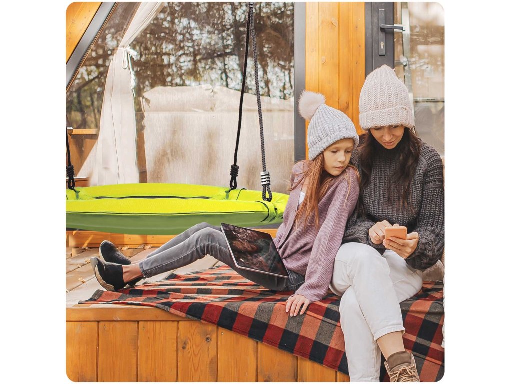 Hintázzon puha védőhabbal borított acélvázon, erős anyagból készült, többszörös varrással és vastag lógóköteleken. Biztosítja a biztonságot, a stabilitást és a tartósságot.