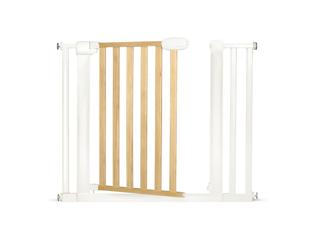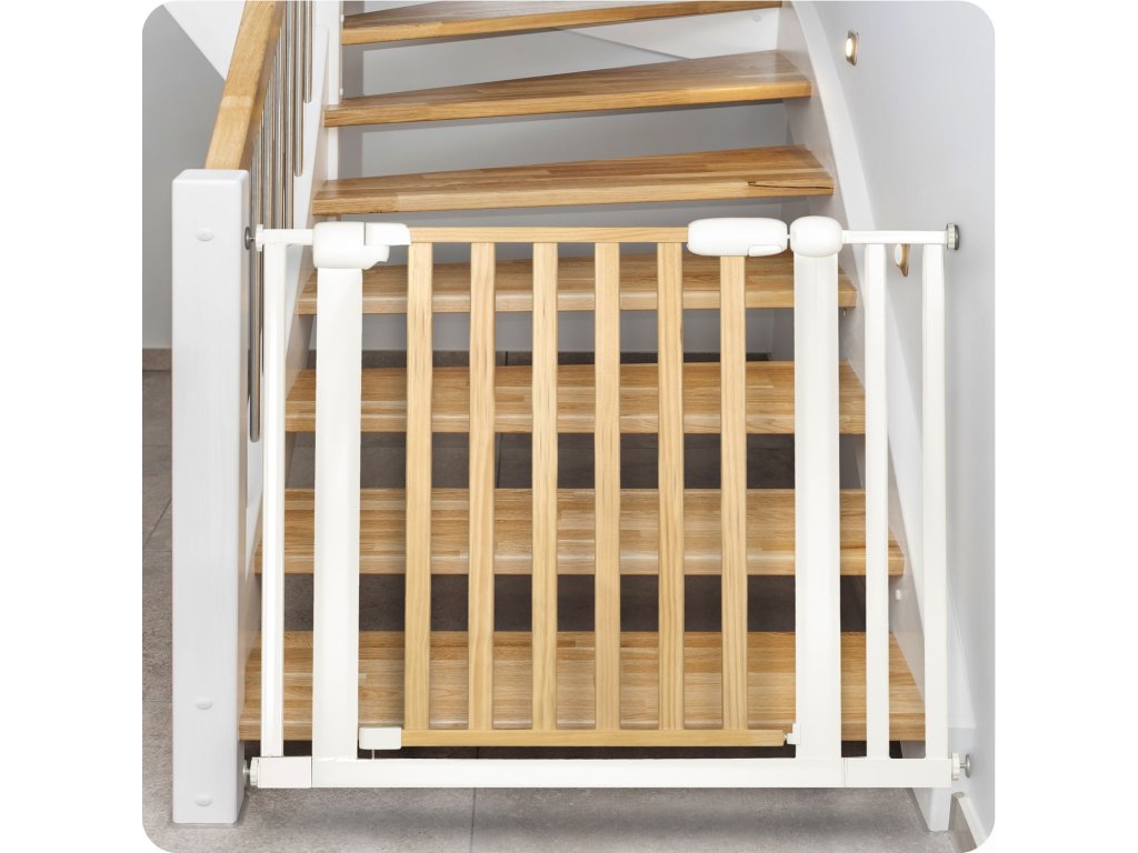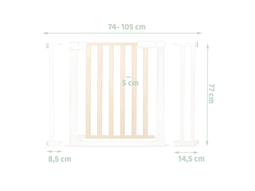 Abővíthetőségnek és a rögzítési rendszernek köszönhetően a kapu 74 cm-től 105 cm-ig terjedőméretű átjárókhoz igazítható .