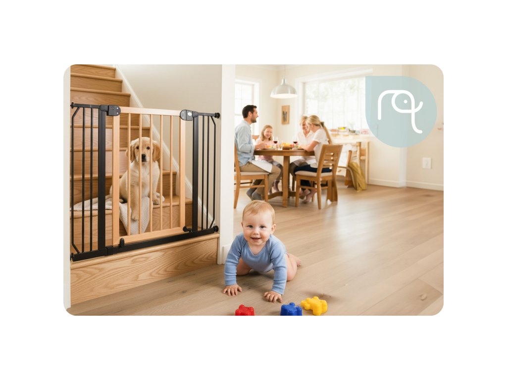 A lépcsős korlát megakadályozza, hogy gyermeke felmásszon vagy leereszkedjen a lépcsőn . Nem fogja lehetővé tenni, hogy belépjen a nem biztonságos helyiségekbe.