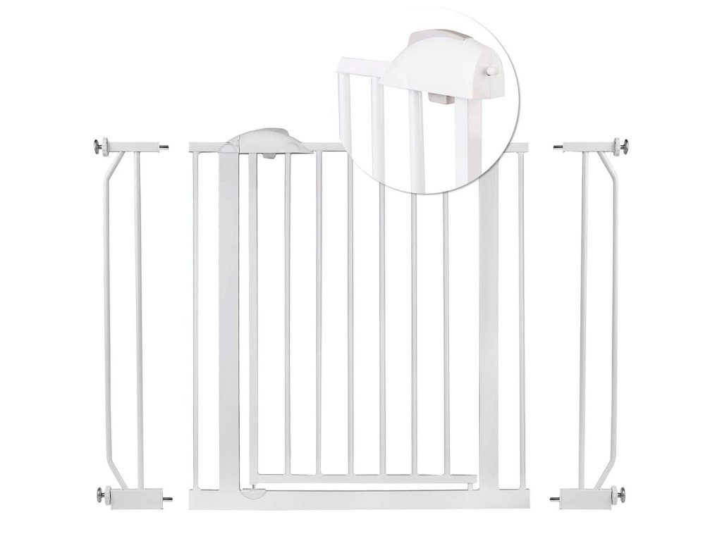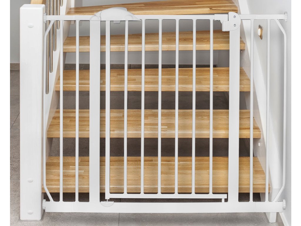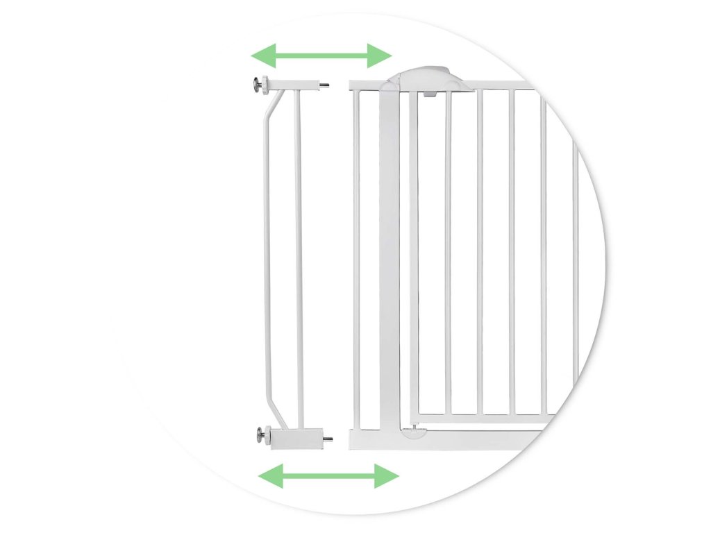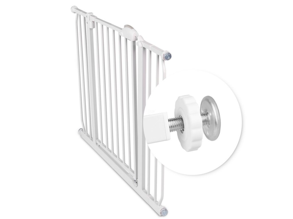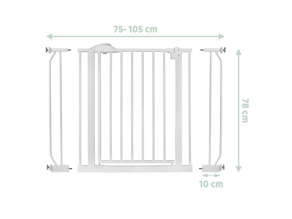Abővíthetőségnek és a rögzítési rendszernek köszönhetően a kapu 75 cm-től 105 cm-ig terjedőméretű átjárókhoz igazítható .