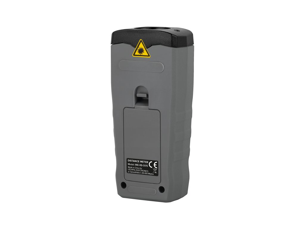 FŐ PARAMÉTEREK Háttérvilágítású kijelző Hatótávolság: 0,5 - 18 m Mértékegységek: méter, láb Pontosság: ±0,5% Mérési alap: elöl/hátul Felbontás: 0,01 m Automatikus kikapcsolás: 20 másodperc inaktivitás után Lézerosztály: 2 Kimeneti teljesítmény: <1 mW Tápegység: