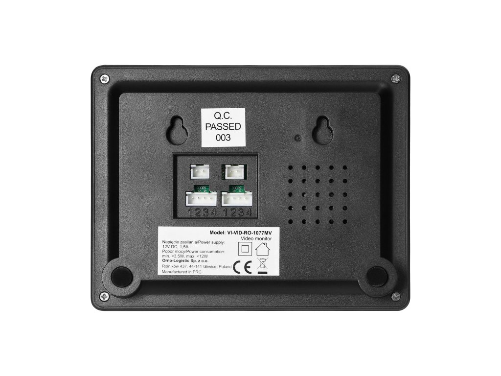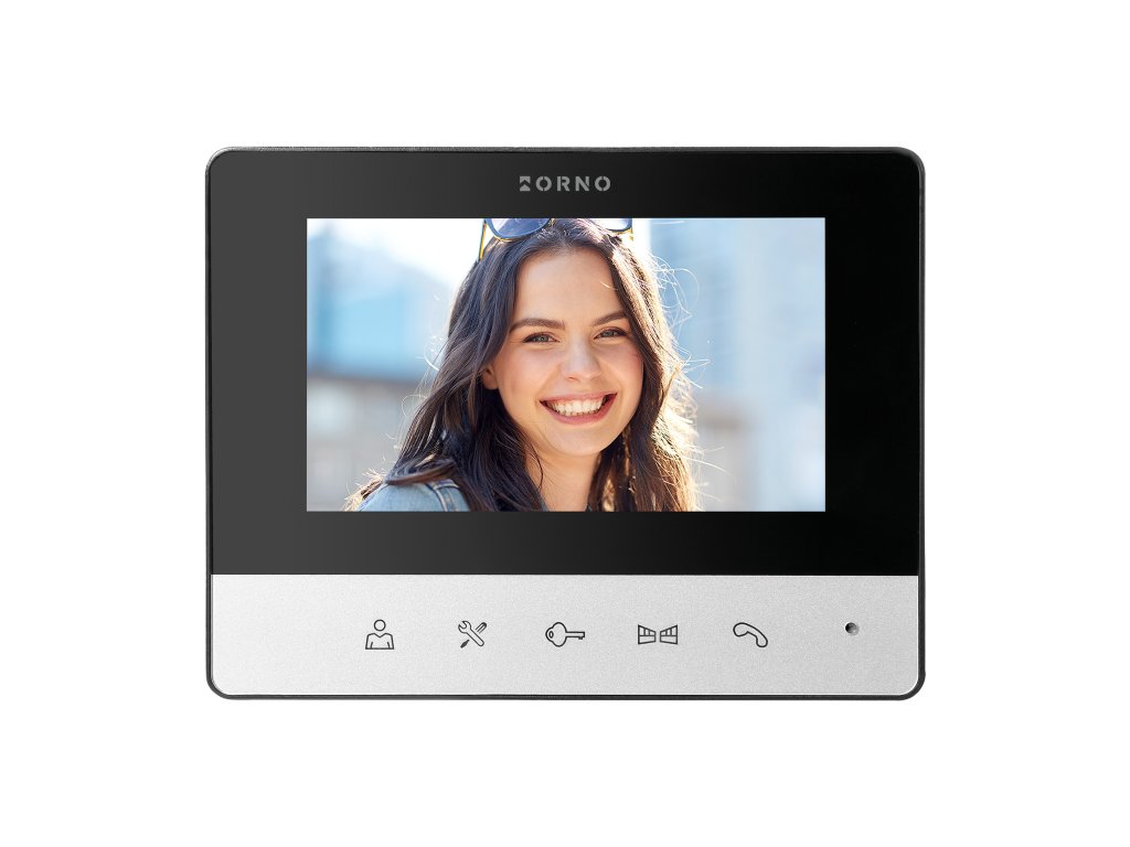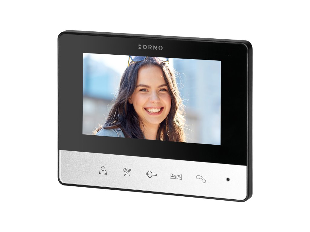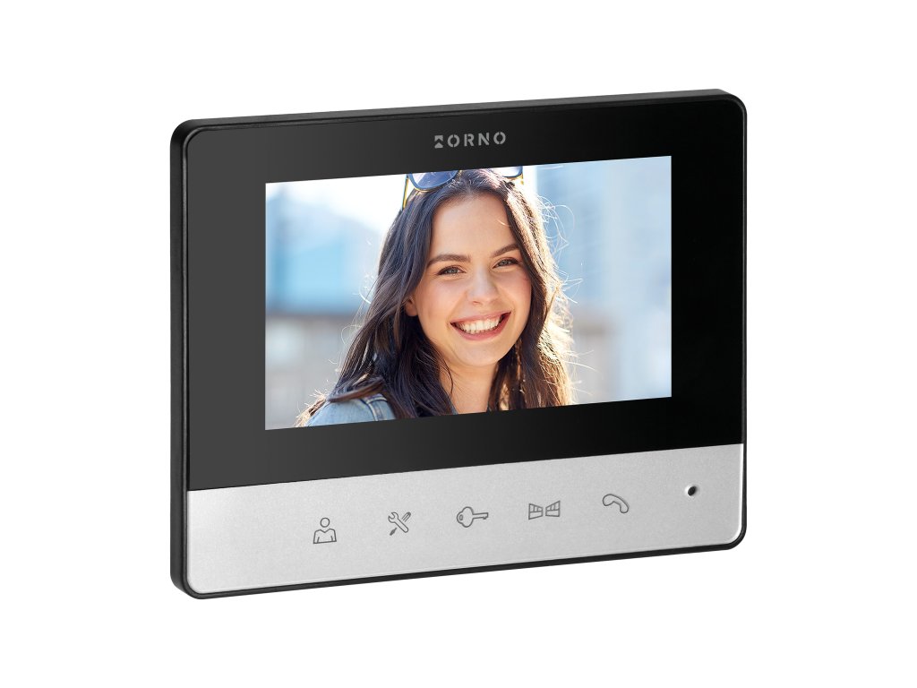 - A 4,3 hüvelykes monitor felületi felszerelésre is alkalmas. Megjeleníti a kamera színes képét, emellett lehetővé teszi a csengőhang elnémítását és a 16 előre programozott csengőhang közül az egyik kiválasztását. A monitor képernyője nem érintésérzékeny; azonban számos intuitív, érintésérzékeny gombbal rendelkezik, amelyek egyszerű kezelést tesznek lehetővé.
