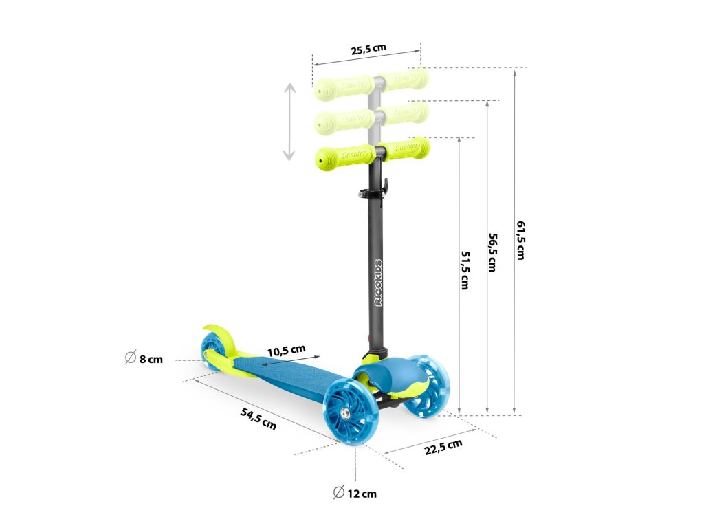 A robogó évekig szolgál, a magasságállítás lehetőségének köszönhetően.