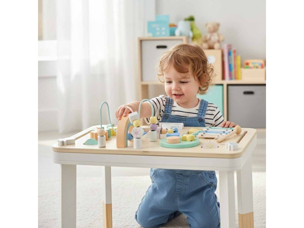 kulcskészségek fejlesztése - Az asztal támogatja a gyermek motorikus készségeinek, logikus gondolkodásának és képzelőerejének fejlődését interaktív elemek segítségével