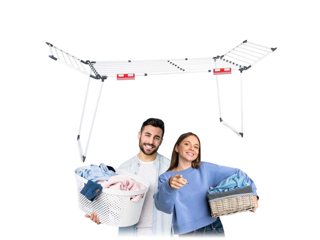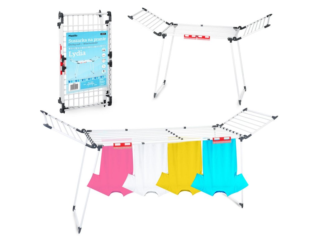 Anagy szárítófelület ellenére a Massido ruhaszárító könnyen tárolható. Csak szerelje össze és készítse elő!