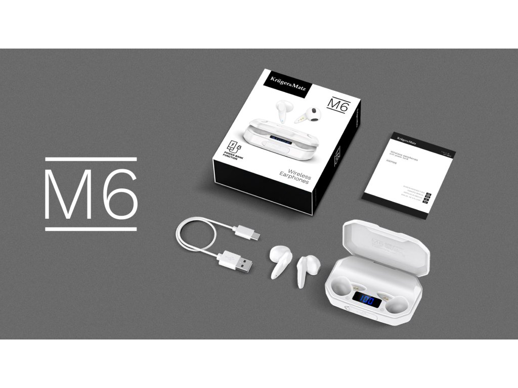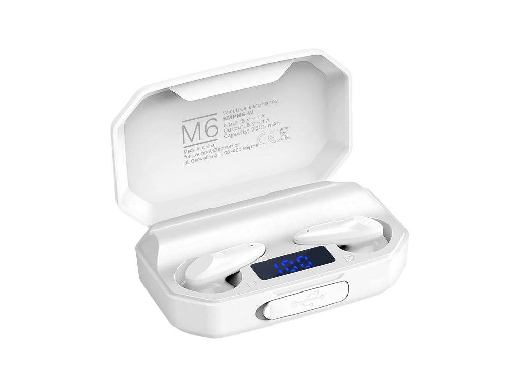 M6 vezeték nélküli in-ear fülhallgató power bankkal - fehér