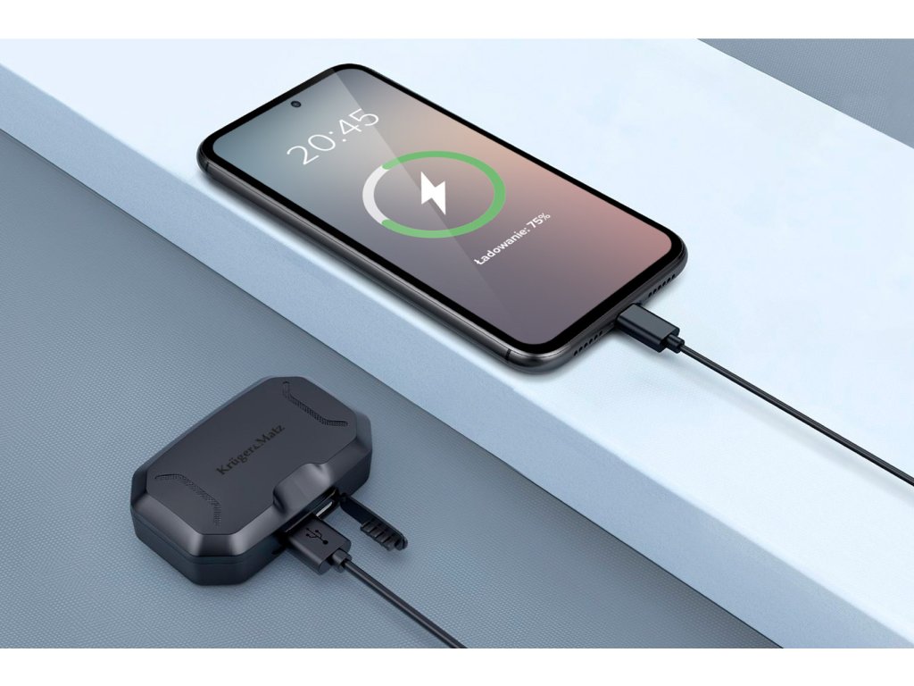 A Kruger&Matz M6 in-ear fejhallgató 25 mAh-s akkumulátorral van felszerelve, amely akár 5 órás üzemidőt biztosít zenehallgatás és telefonhívások közben.