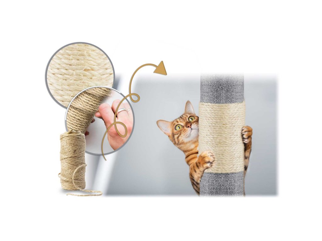 - 4 oszlop erős szizál kötéssel borítva a karmok élezésére,