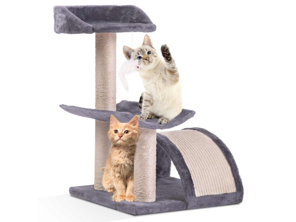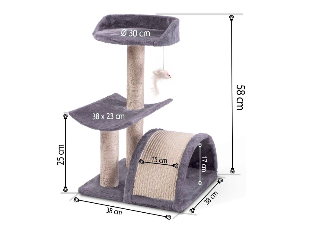 - 3 oszlop erős szizál kötéllel borítva a karmok élesítéséhez,