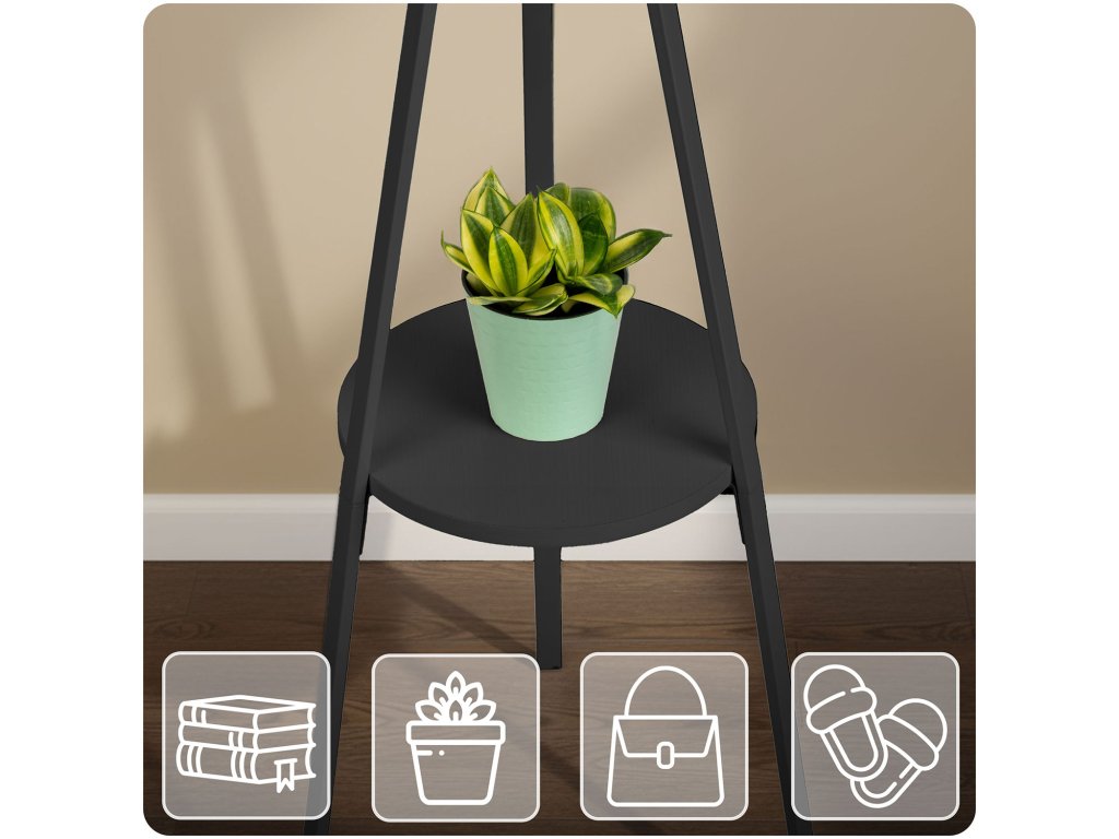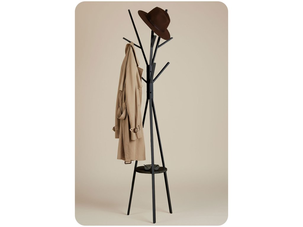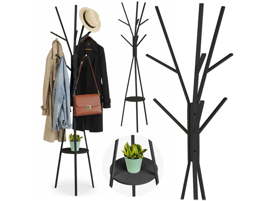 A bemutatott fogasnak van egy polca táskák vagy tartozékok számára.