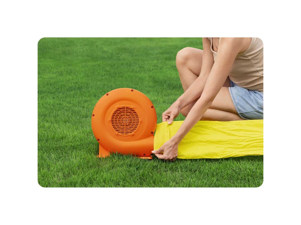 Az erős fújóka kevesebb mint 5 perc alatt felfújja a parkot.