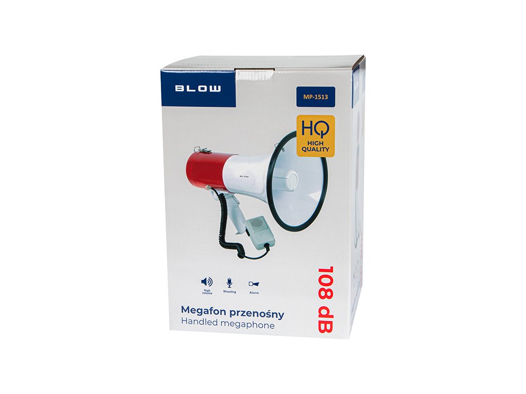 blow megafonunk univerzális felhasználású, nagyon gyakran használják kiáltványok, csoportgyűlések, zarándoklatok és más hasonló összejövetelek alkalmával . Amegafon 8 darab R14-es elemmel vagy újratölthető akkumulátorral működtethető