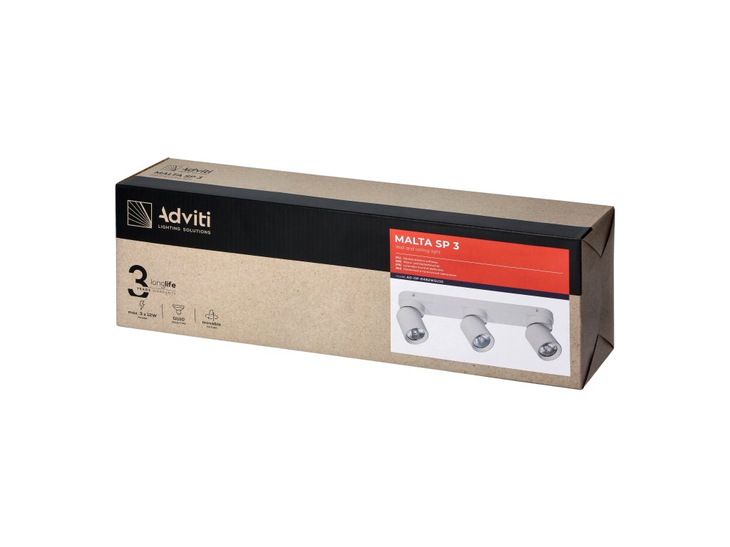 - Három fényforrás: Három GU10 foglalattal, amelyek különböző típusú LED vagy halogén izzók használatát teszik lehetővé, elegendő fényt biztosít az egész helyiség megvilágításához.