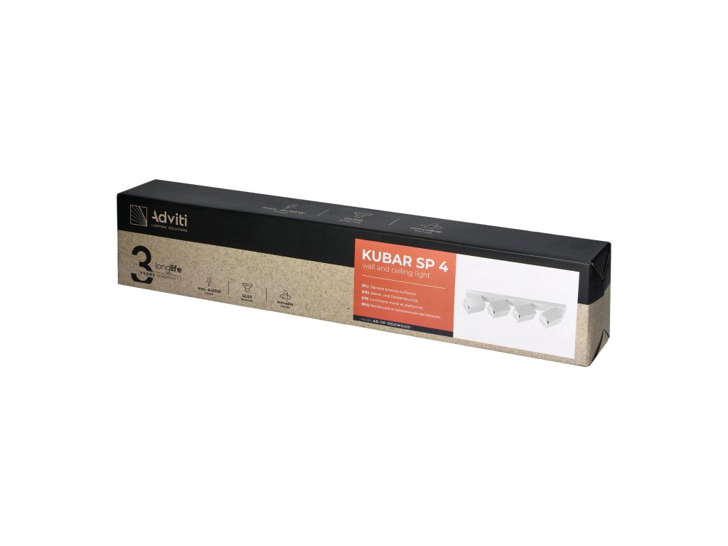 - Négy fényforrás: Négy GU10 foglalattal rendelkezik, így ez a lámpa még nagyobb helyiségek számára is elegendő világítást biztosít, és minden foglalat lehetővé teszi energiatakarékos izzó használatát, ami energiát takarít meg.