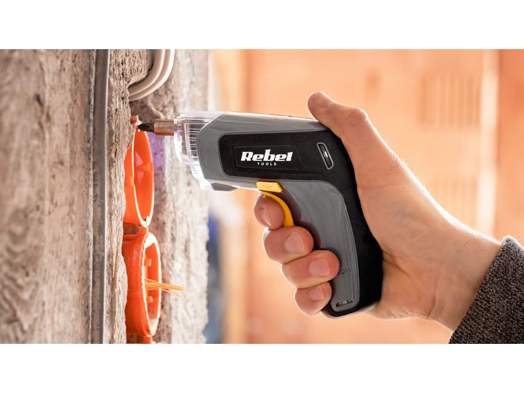 Már rövid idő után észre fogja venni, hogy a Rebel Tools csavarhúzót mennyire kényelmes használni. A szerszám mágneses fogantyúval van ellátva, így a bitek cseréje nagyon gyors. A szerszám rendelkezik egy munkalámpával is, amely megvilágítja a csavarozási területet. Az egyik olyan tulajdonság, amelyet már a használat első pillanataiban értékelni fog, az akkumulátoros működés. Az 1,3 Ah lítium-ion akkumulátor, amellyel a csavarhúzó fel van szerelve, hosszú élettartamot és nagy teljesítményt garantál. A készülék előnye a csendes működés és a könnyű kialakítás is - mindössze 380 g, ami jelentősen növeli a kényelmet munka közben.