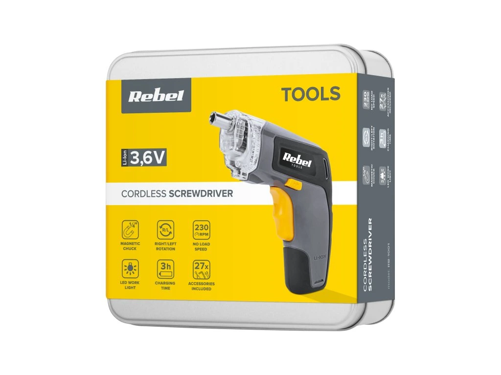 Ha Ön barkácsoló, biztosan tudja, hogy vannak olyan szerszámok, amelyek elengedhetetlenek a műhelyében. Szeretne lecsavarozni egy szekrényt vagy szétszedni egy számítógépes tokot? Felejtse el a hatalmas fúrót és a klasszikus csavarhúzókat! Válasszon egy akkus csavarhúzót a Rebel Tools kínálatából! Az óramutató járásával megegyező és ellentétesirányban történő forgatás funkciója ideális az ilyen típusú feladatokhoz. Akár 27 cserélhető bitet is tartalmaz, így biztosan megtalálja a megfelelő bitet.