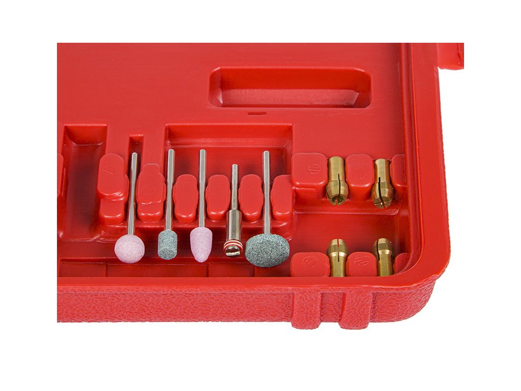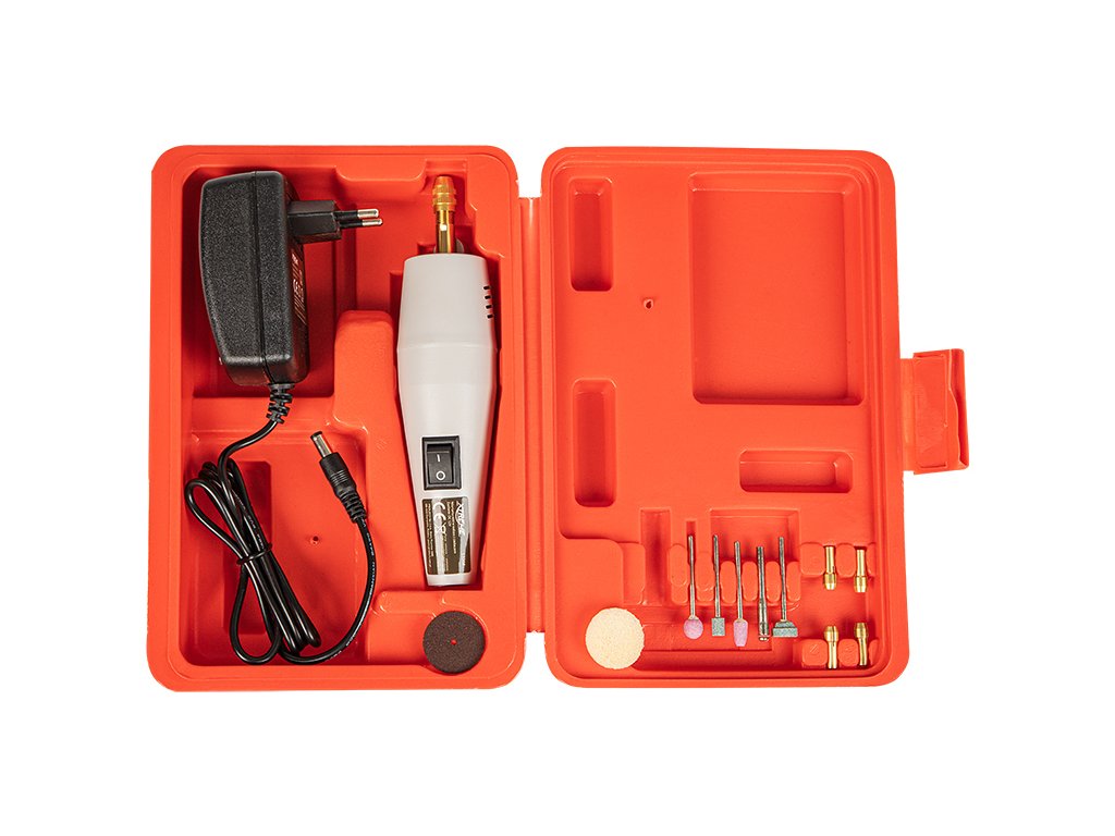 -négy fúrótokmányt (betéteket), két miniatűr csiszolókorongot, golyósmarót és fúrószárat tartalmaz