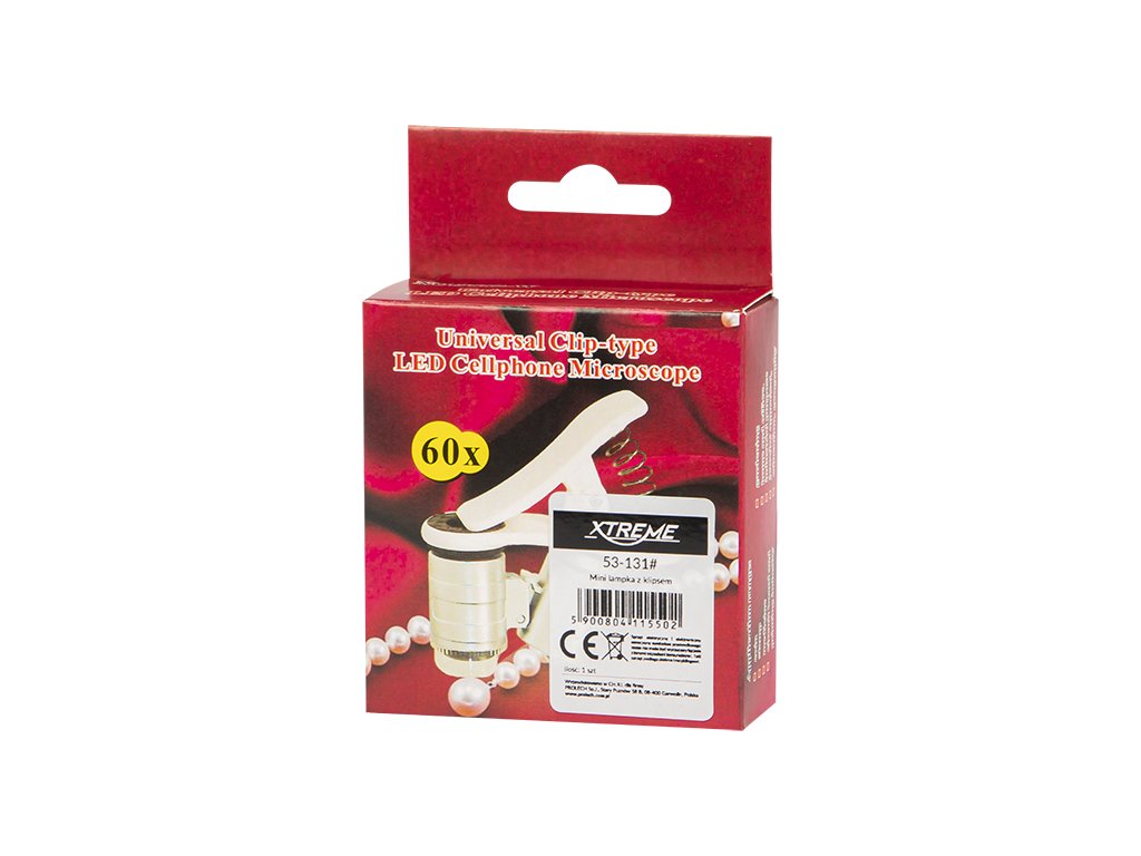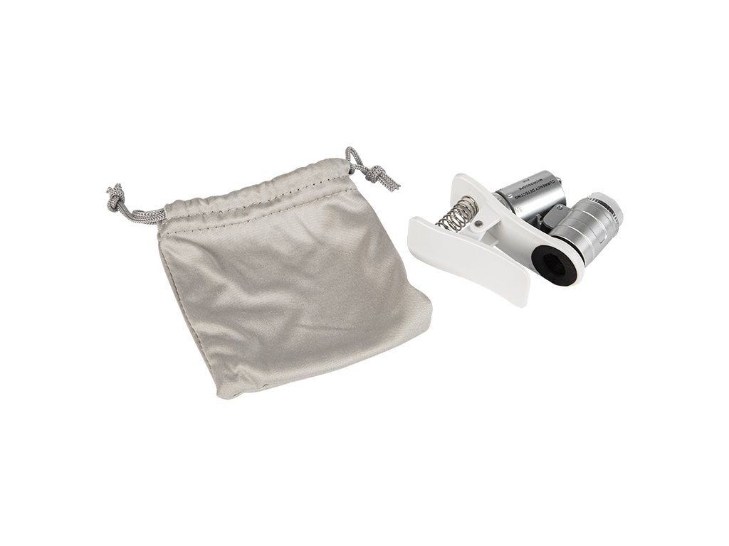 Fehér vagy ultraibolya megvilágítású mikroszkóp beépített kamerákhoz és mobiltelefonokhoz. A kihúzható objektívhez egy speciális, rugóra szerelt klipsz került, amely lehetővé teszi a termék mobiltelefonhoz való rögzítését, és a klipszek érintkezési habjának köszönhetően a telefon borítása semmilyen módon nem sérülhet meg. A terméket elsősorban a fotózás szerelmeseinek tervezték, mivel akár 60-szoros zoomot is biztosít, de a felhasználási tartománya sokkal szélesebb, és ideális lesz például akkor, ha különböző típusú termékeket kell közelről megvizsgálni. A készlethez egy speciális hordtáska is tartozik, amely megkönnyíti a felszerelés szállítását.