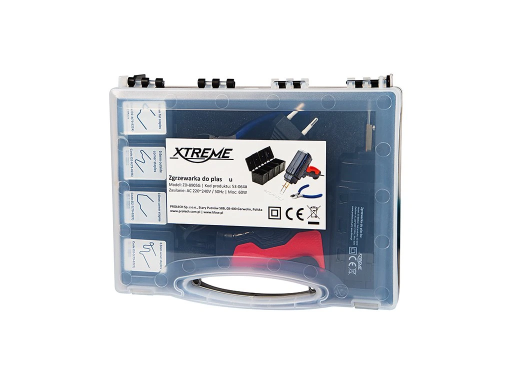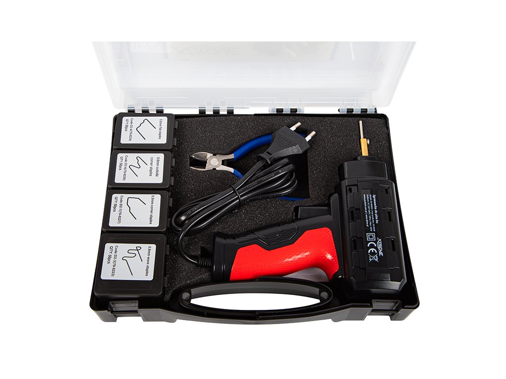 Műanyag hegesztő 60WKülönböző típusú sérült műanyagok javítására és megerősítésére tervezték. 4 készlet különböző formájú műanyag kapcsokat tartalmaz. A készlet fogót és kést tartalmaz a javítási folyamat megkönnyítésére. SADE: