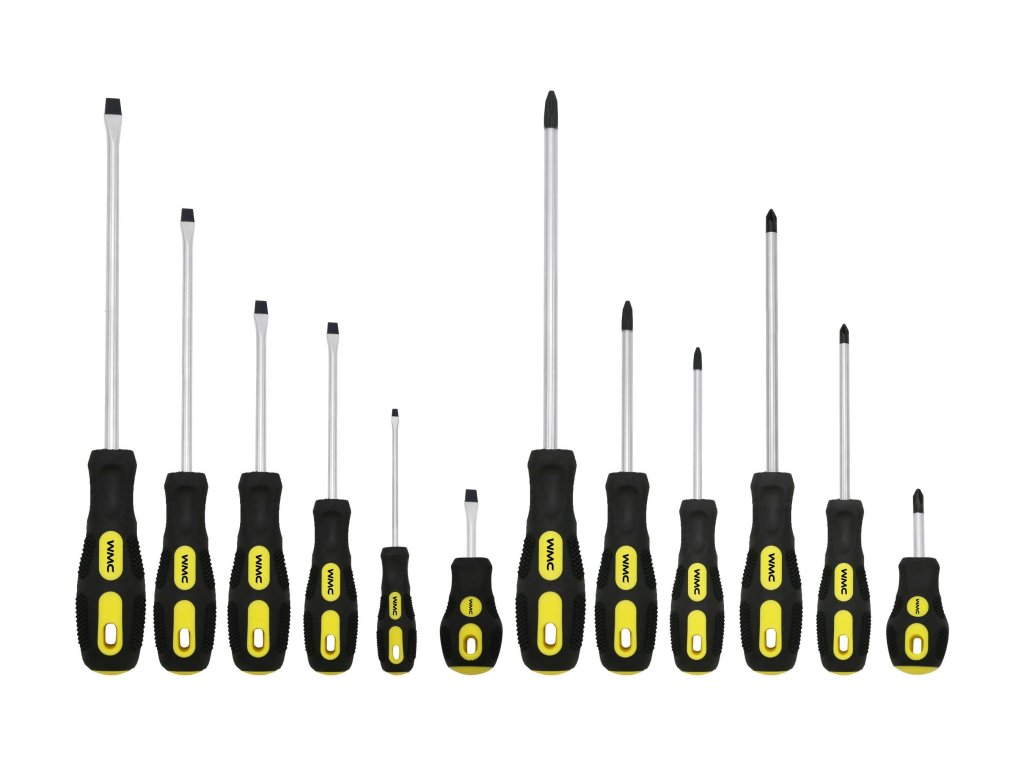 - Csavarhúzók SL – 6 db: 8x200 mm, 6x150 mm, 6x100 mm, 5x100 mm, 3x75 mm, 6x38 mm
