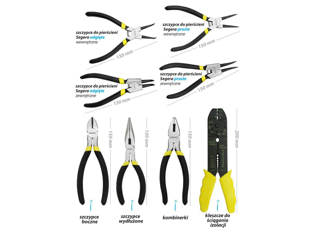 - Szigetelés lehúzó és csatlakozó végek préselésére alkalmas fogók 200 mm – 1 db
