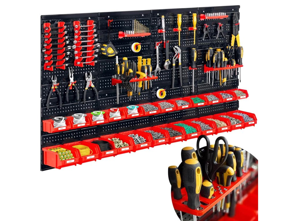 A szerszámtábla komplett tartó és tartálykészlettel minden műhely nélkülözhetetlen eleme.