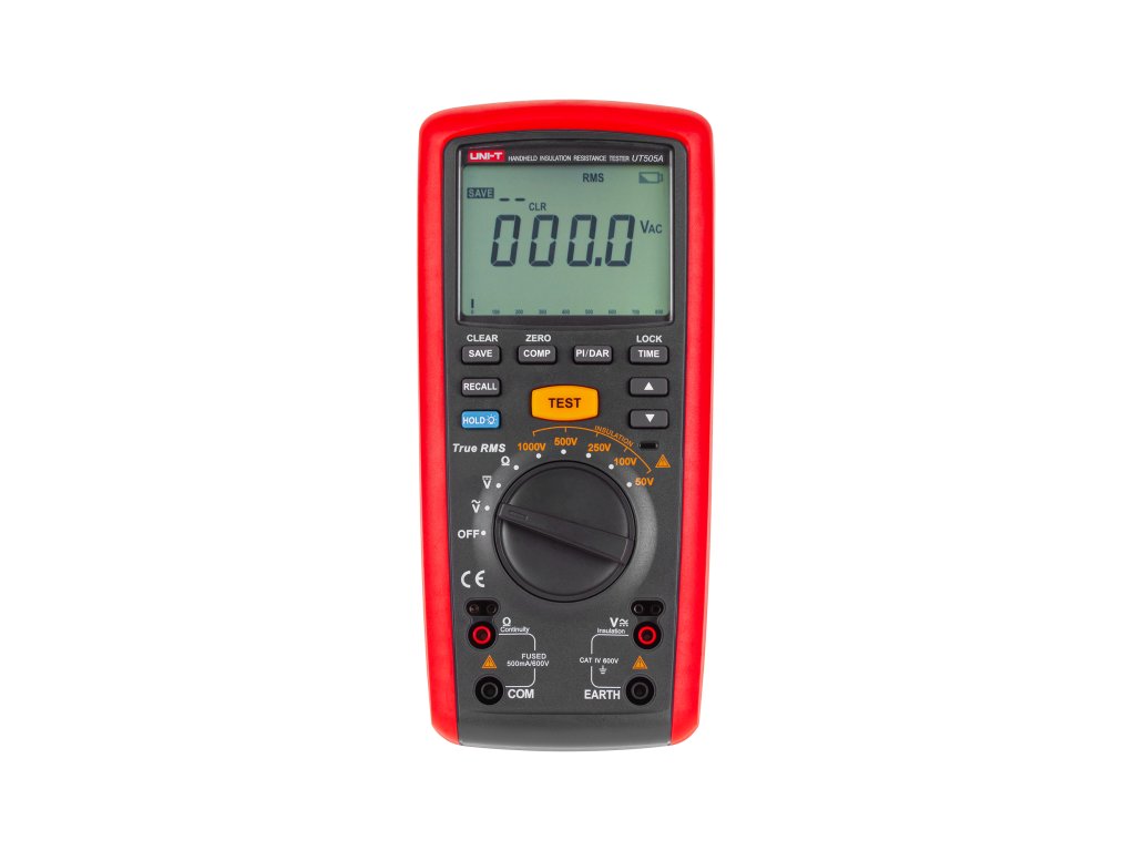 AzUT505A egy zsebméretű digitális szigetelési ellenállásmérő AC TRUE RMS/DC 50V, 100V, 250V, 500V, 1000V funkciókkal és kis ellenállásméréssel. A készülék nagy pontossággal és stabilitással rendelkezik. Praktikus méreteinek, akkumulátoros tápellátásának és intuitív kezelésének köszönhetően ez a műszer ideális minden körülmények között történő használatra.