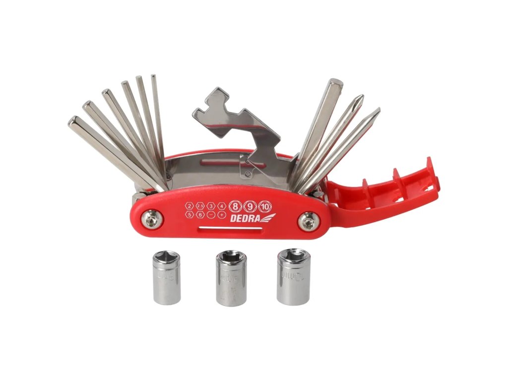 Multiszerszám, DEDRA 06F244 kerékpárjavító szett 15 db, CRV
