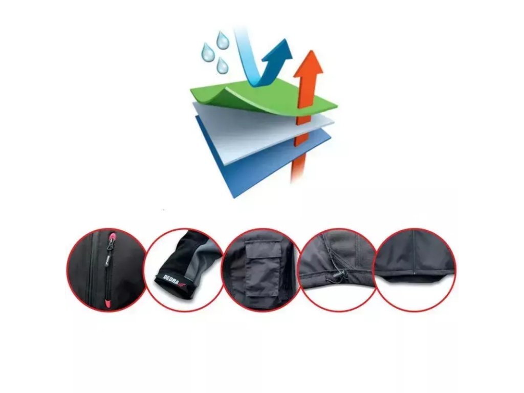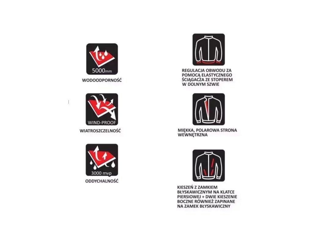 Férfi softshell kabát TPU membránnal. A membrán szélállóságot, 5000 mm-es vízállóságot és 3000-es (mpv) légáteresztő képességet biztosít, 320 g/m?-es szövet súly mellett. A kabátnak mikroflís bélése van. Három cipzáras zseb. Tépőzáras mandzsetta és az alján húzózsinór teszi lehetővé a kabát tökéletes illeszkedését. Cipzárral záródik. Elérhető méretek: S-től XXL-ig.