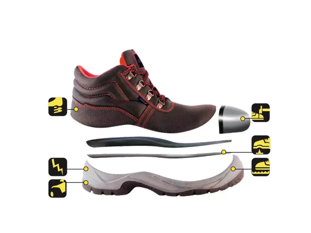 - Acél orrbetétes és átszúródás elleni talpbetéttel ellátott biztonsági cipő