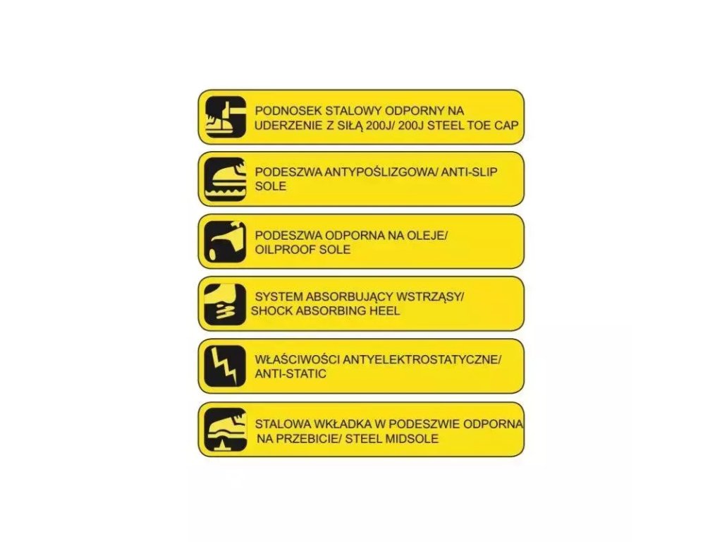 - CE és EN ISO 20345:2011 tanúsítvánnyal rendelkező biztonsági cipő