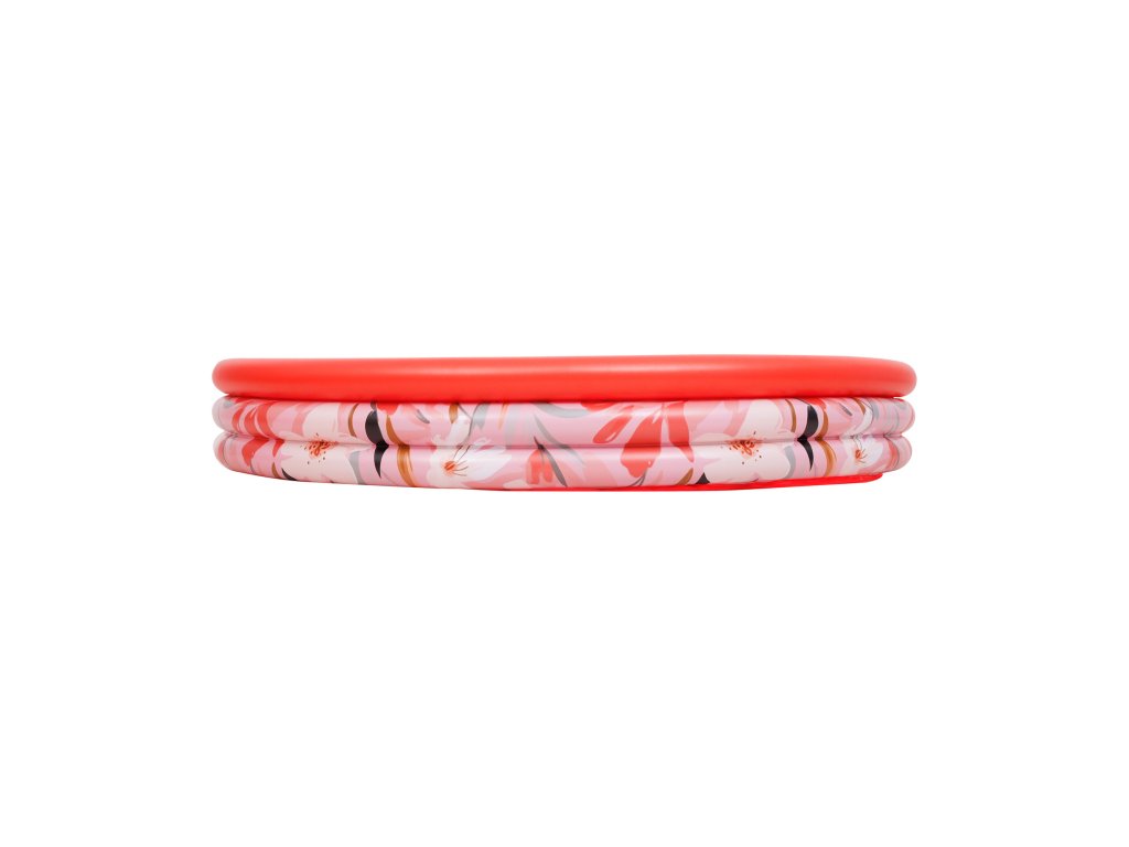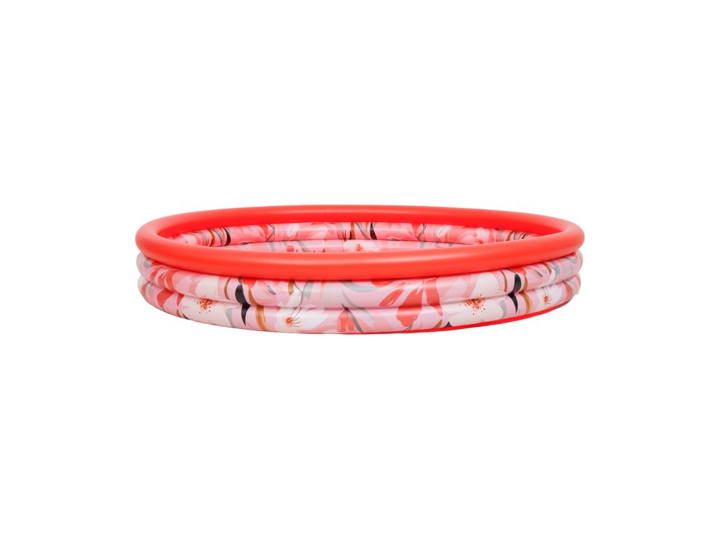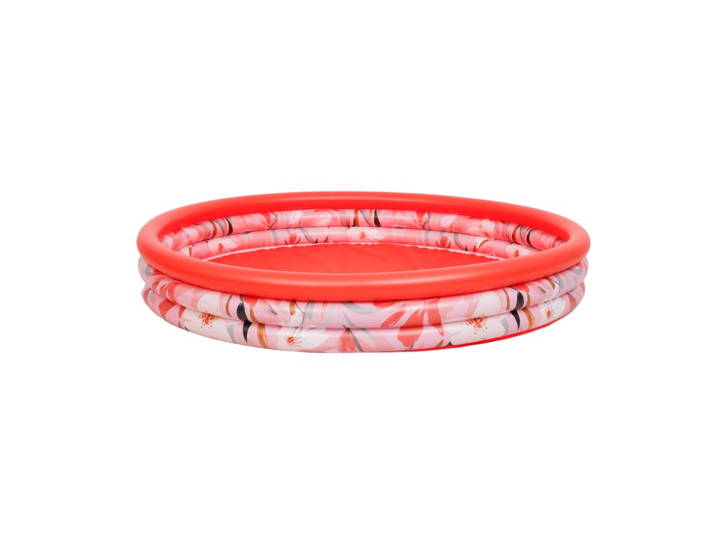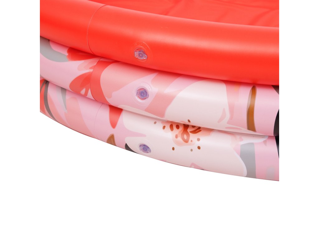 A piros közép és a virágminta boldog, nyaralós külsőt kölcsönöz a medencének. A virágok felkeltik a legkisebbek figyelmét, és a szokásos játékot színes kalanddá varázsolják. Ez nem csupán egy medence – ez egy nyári hangulattal és pozitív energiával teli tér, amely tökéletesen illeszkedik a családi délutánokhoz a kertben.