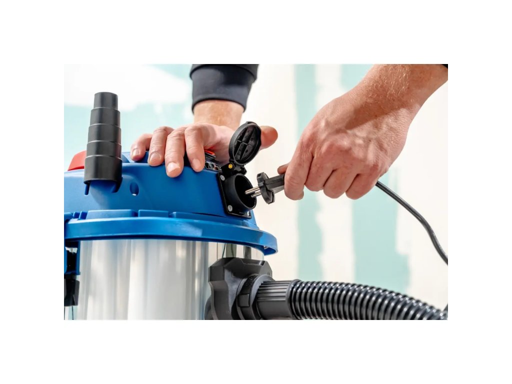 - Csatlakozó aljzat elektromos szerszámhoz max 2000W – lehetővé teszi elektromos szerszámok csatlakoztatását, egyidejű szívást biztosítva a munkavégzés során keletkező anyagok esetében