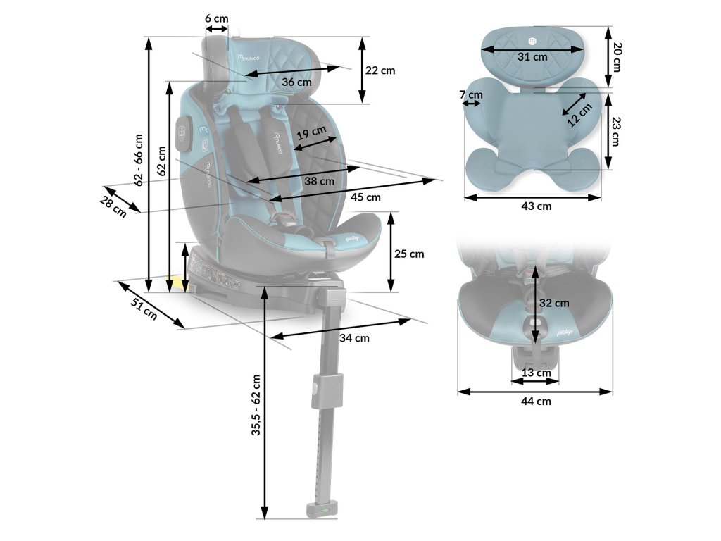 A szék fő jellemzői:- 360 fokos forgórendszer, a kényelmes utazásért és a gyermekhez való könnyű hozzáférésért,