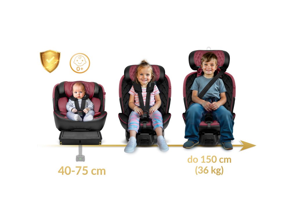 A modern technológia lehetővé teszi az ülés szabad elforgatását, ami megkönnyíti az oldalról való hozzáférést a gyermekhez, így könnyen és gyorsan kiemelhető az autósülésből. Bármilyen korcsoport számára alkalmas