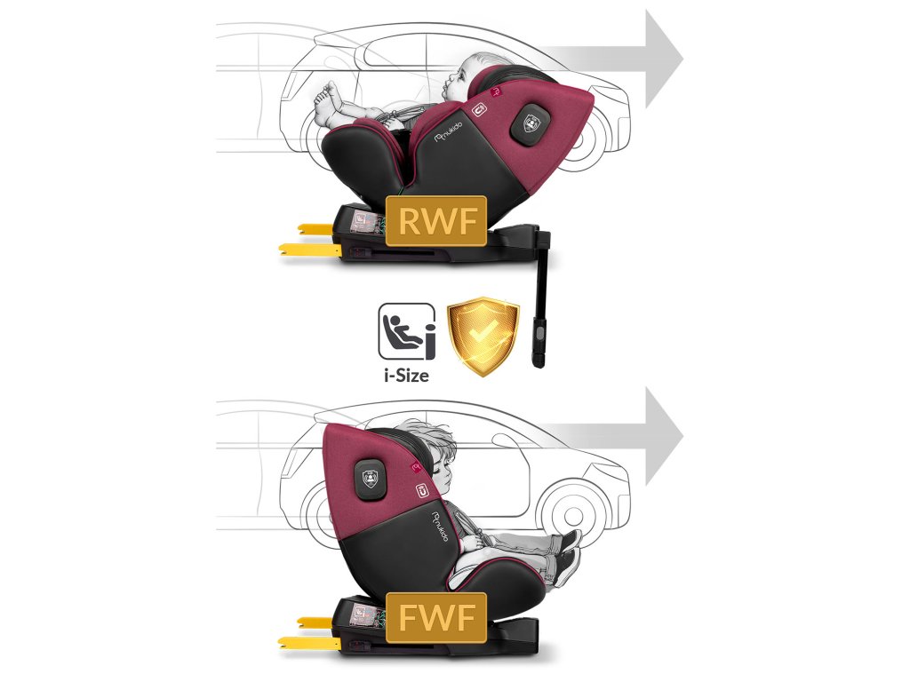 - háttal az menetiránynak helyzet (RWF) 40-105 cm magas gyermekek számára, szemben az menetiránynak helyzet (FWF)