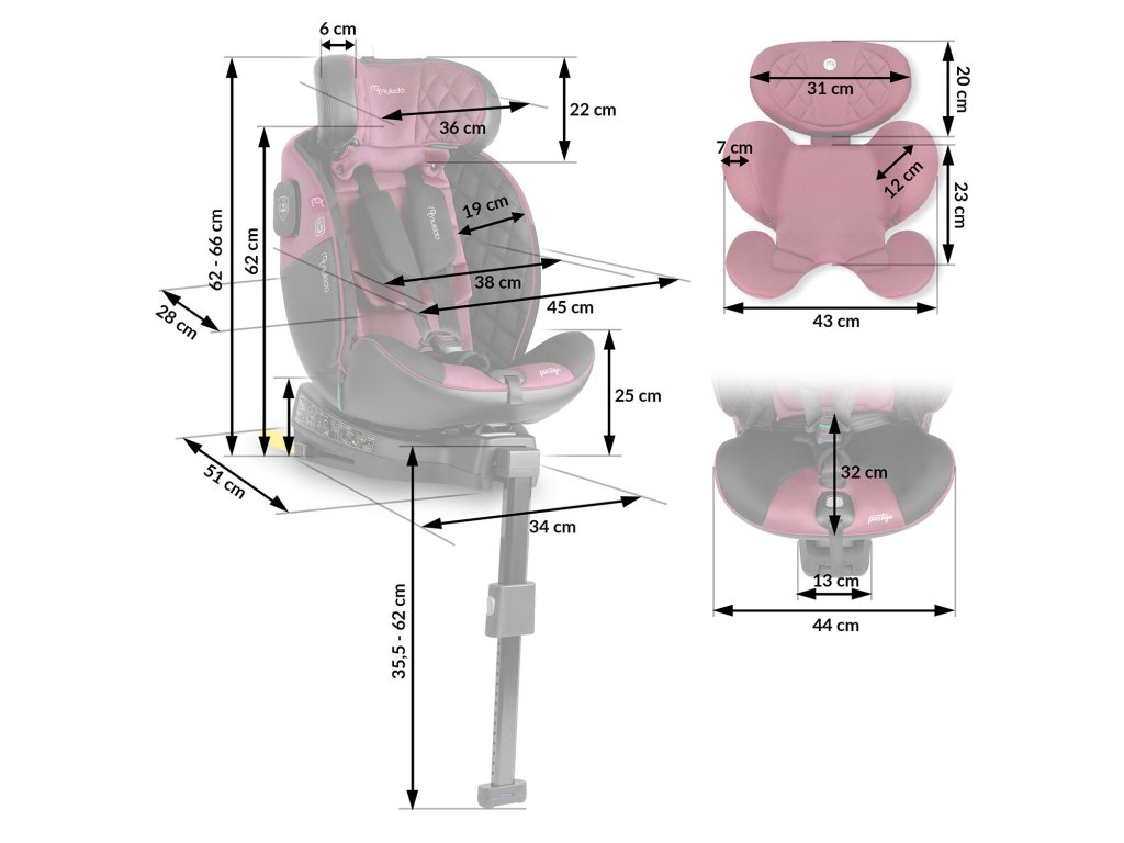 Nukido Prestige Line fekete-rózsaszín gyerekülés 0-36 kg ISOFIX