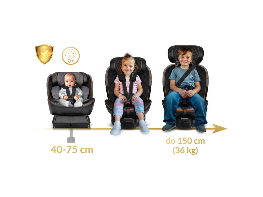- 12 fokozatú fejtámla állítás — az ülés a gyermekkel együtt nő, megfelel az európai ECE R129 biztonsági szabványnak - i-Size homologizáció,