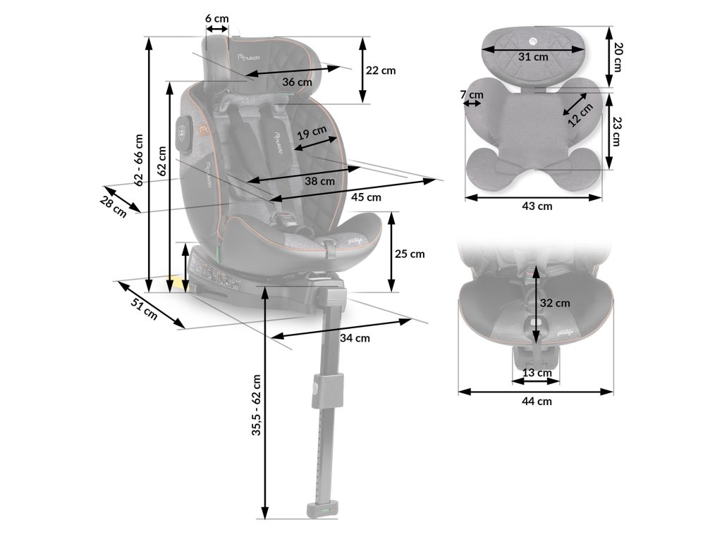 - 12 fokozatú fejtámla állítás — lehetővé teszi az ülés magasságának tökéletes igazítását a gyermek igényeihez, biztosítva ezzel a kényelmes és biztonságos utazást.