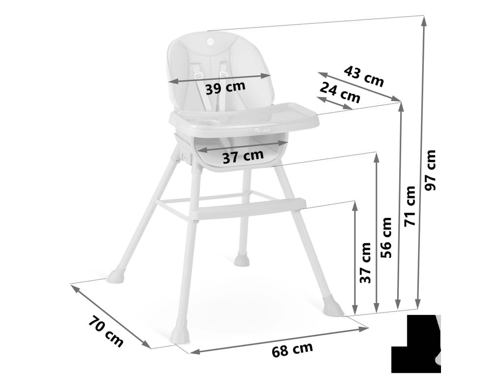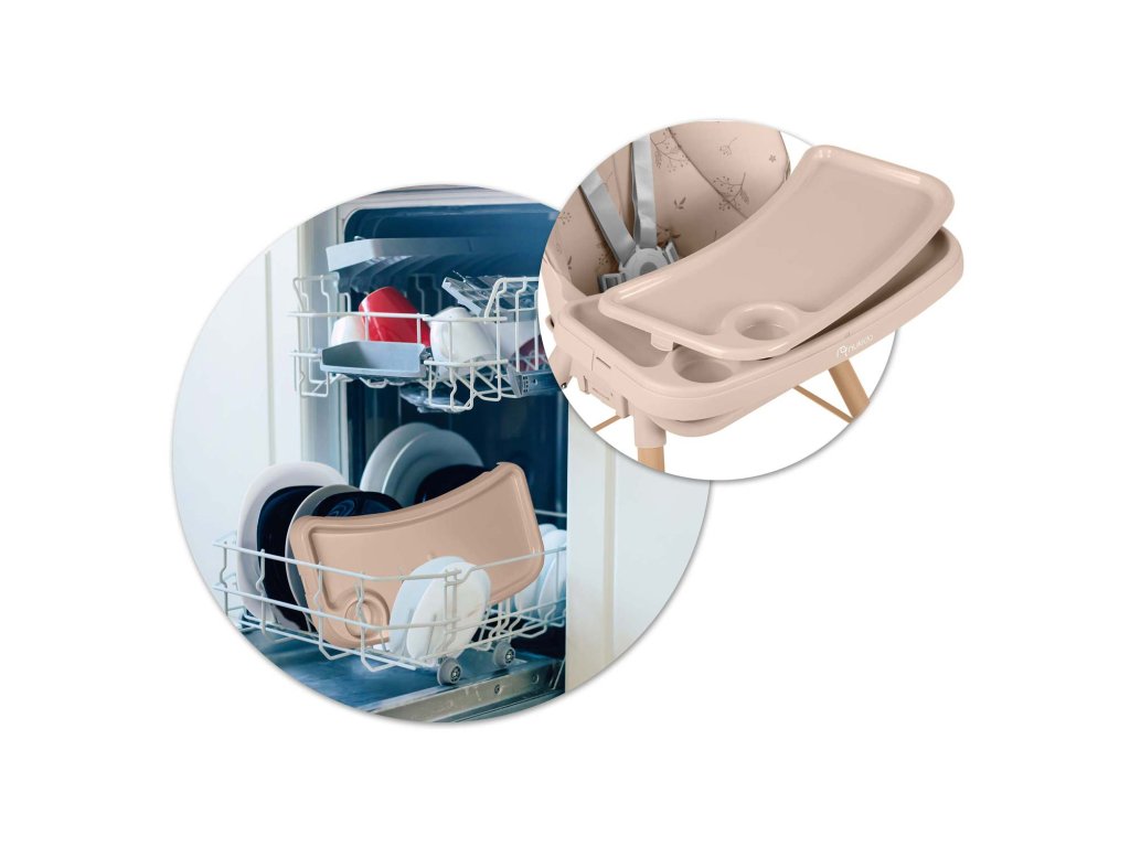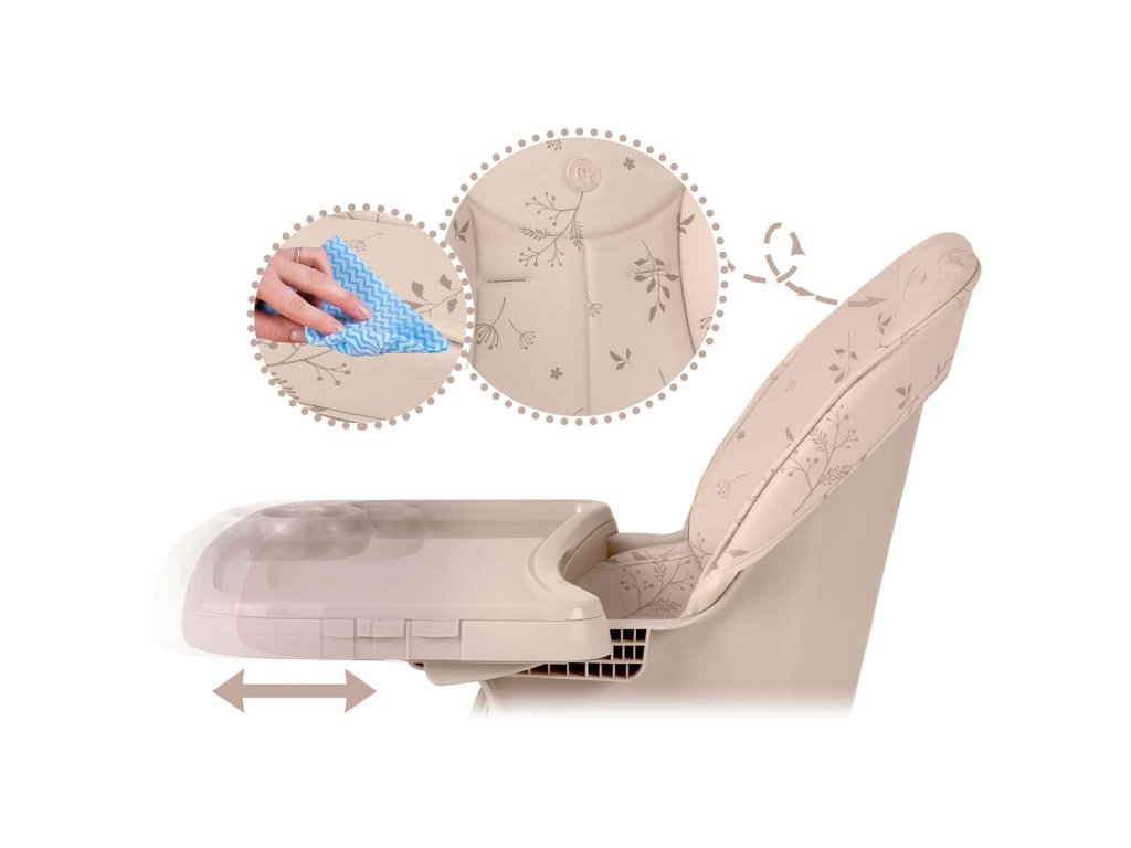 A szék lehetővé teszi a tálca távolságának szabad állítását a gyermektől. Teljesen le is szerelhető bármikor.