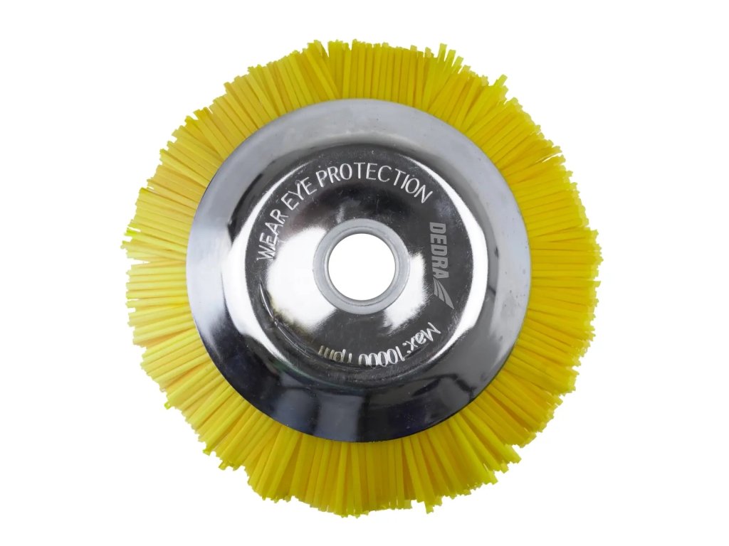 A DEDRA DED87157 benzinmotoros fűkaszához készült nylon kefe szerszám, amely a sík felületek tisztítására szolgál.