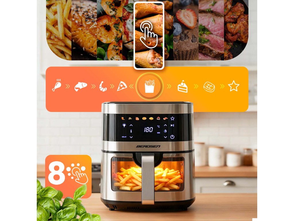 A BERDSEN BD-655 olajmentes sütő a funkcionalitás és a stílus kombinációja.