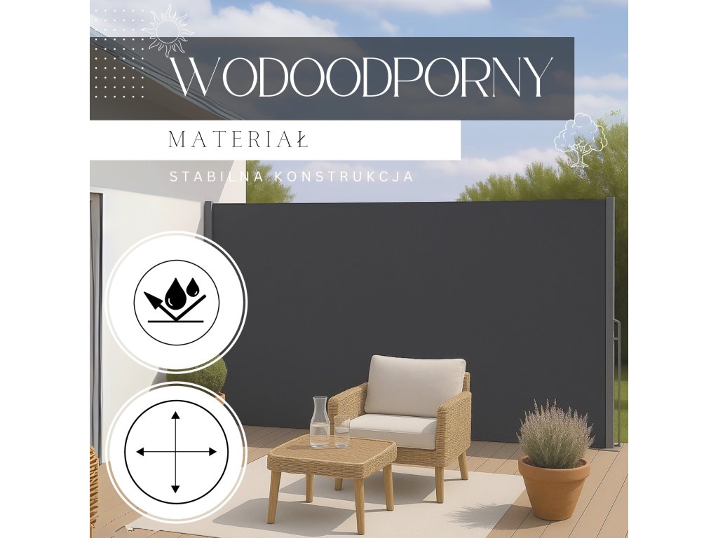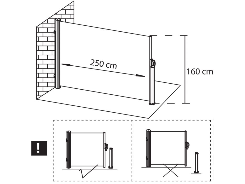 Oldalsó napellenző 250 x 160 CM fekete-szürke AW0001