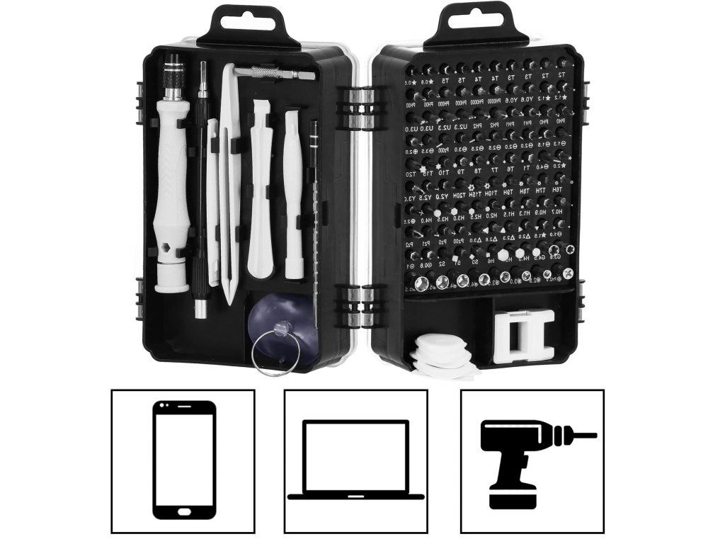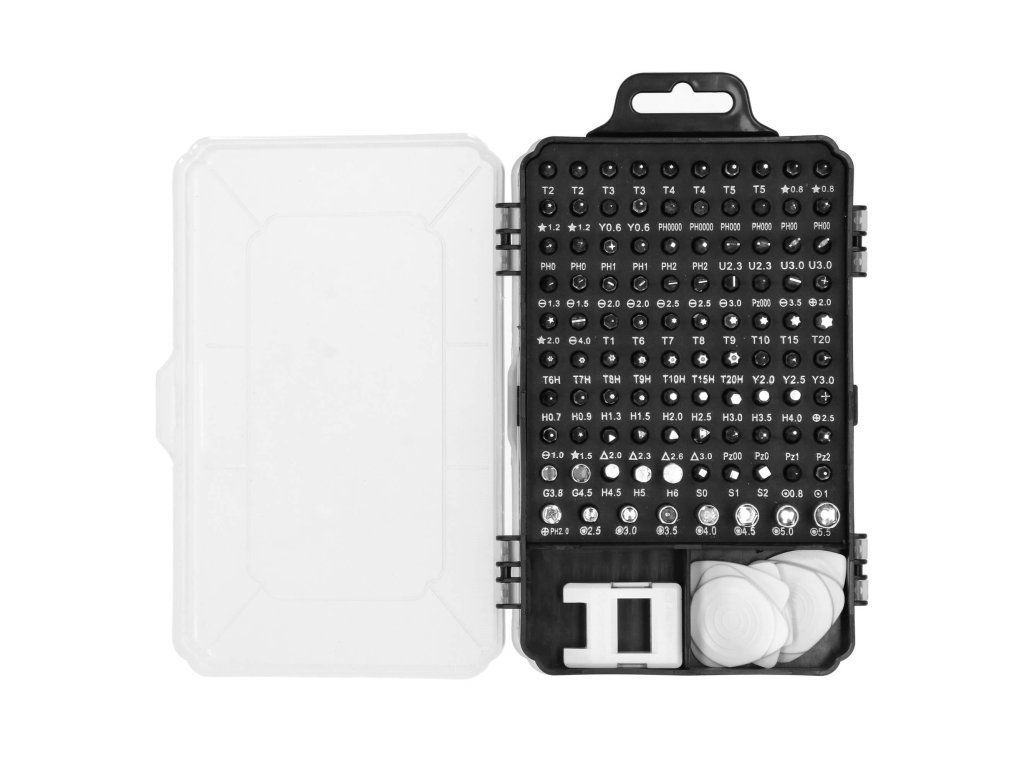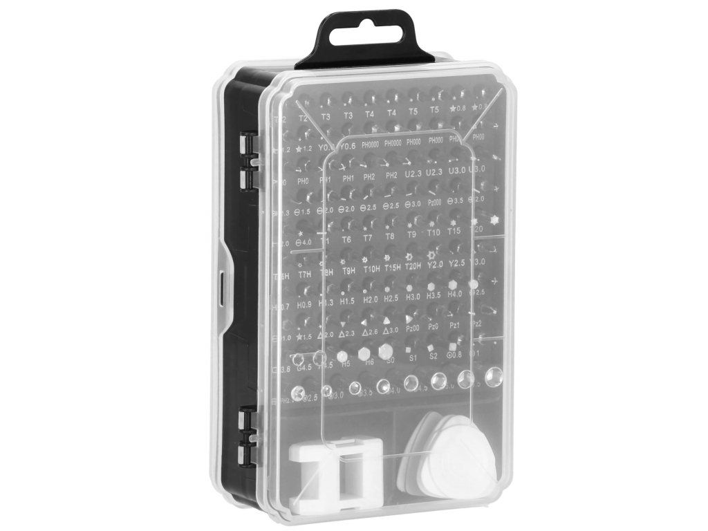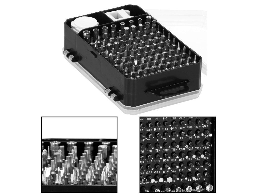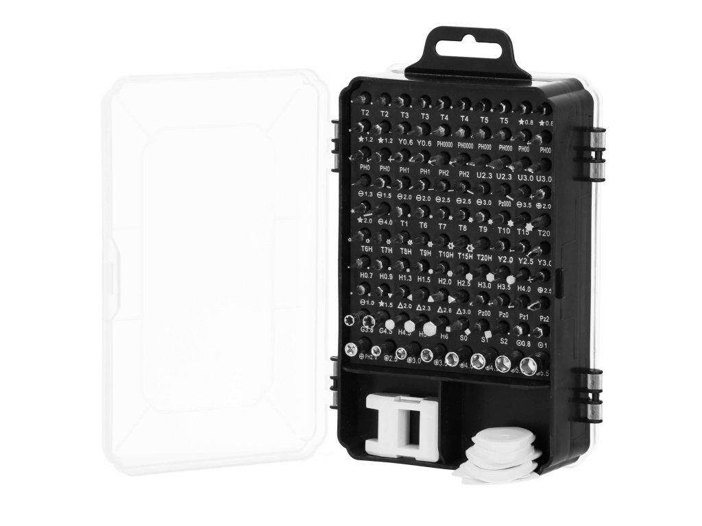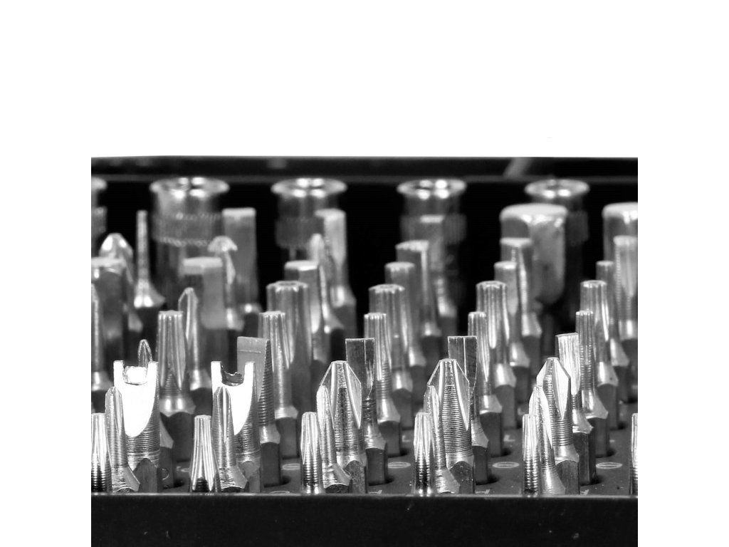 - csavarhúzó foglalat: 100x csavarhúzó foglalat (bitek).