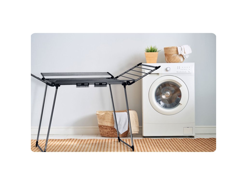 A huzalok közötti megfelelő távolságoknak köszönhetően a víz gyorsan elpárolog, és a ruha egyenletesen száraz és kész lesz az összehajtogatásra!