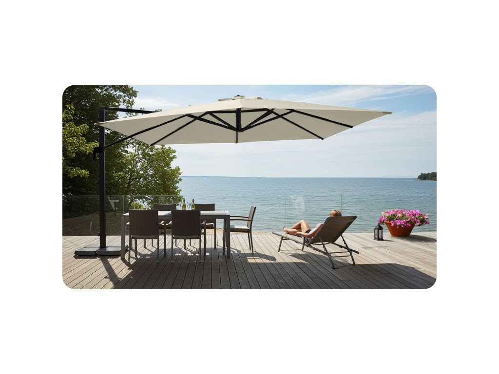 - A napernyő tetszőleges beállítási lehetősége: magasság + dőlésszög.