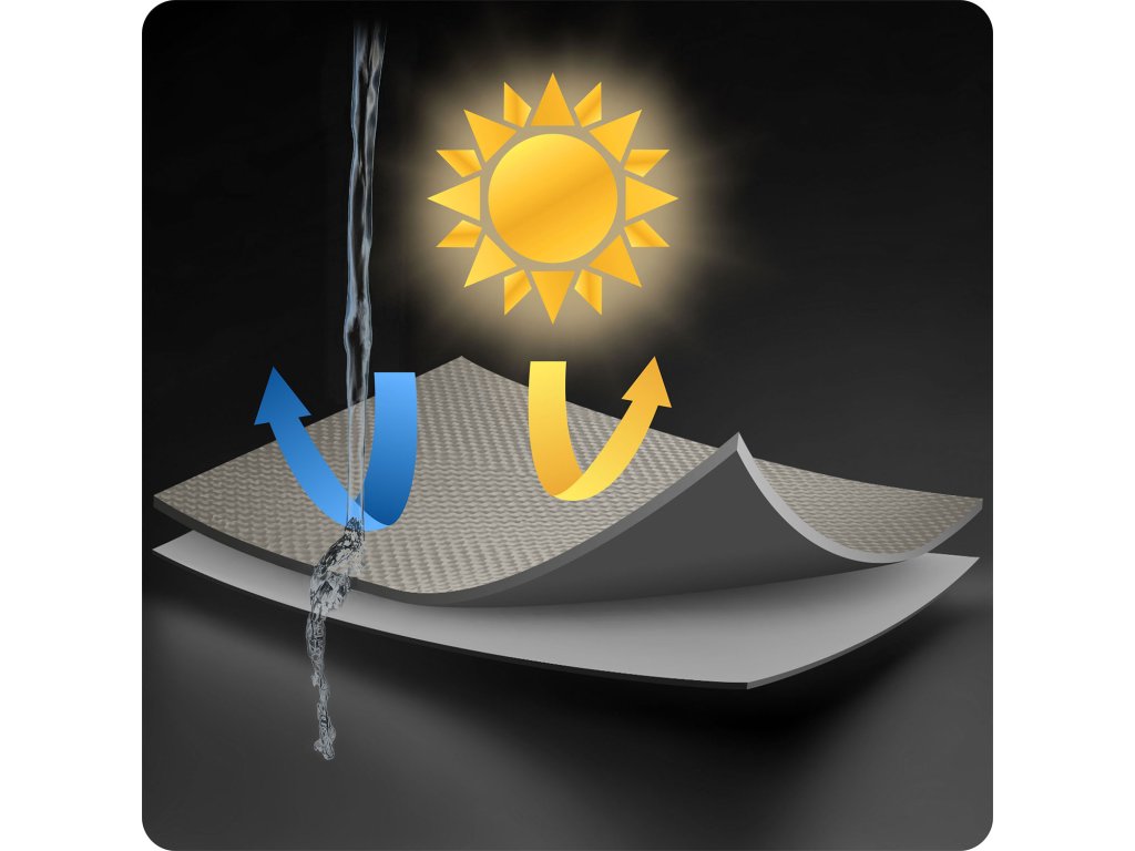 - A stabil oldalkar lehetővé teszi a dőlésszög folyamatos beállítását, így az aktuális időjárási körülményekhez igazíthatja a védelmet.